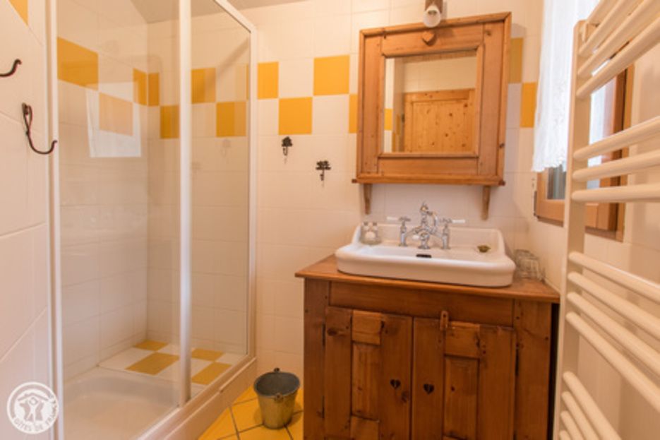 Chambre avec mezzanine. Vue montagnes, 1er étage, balcon. Parquet au sol. 1 lit 140x190cm, chevets + lampes, armoire penderie, bureau. Salle d'eau avec douche, wc indépendant. Sur mezzanine, 1 lit 1 personne + 1 lit d'appoint.